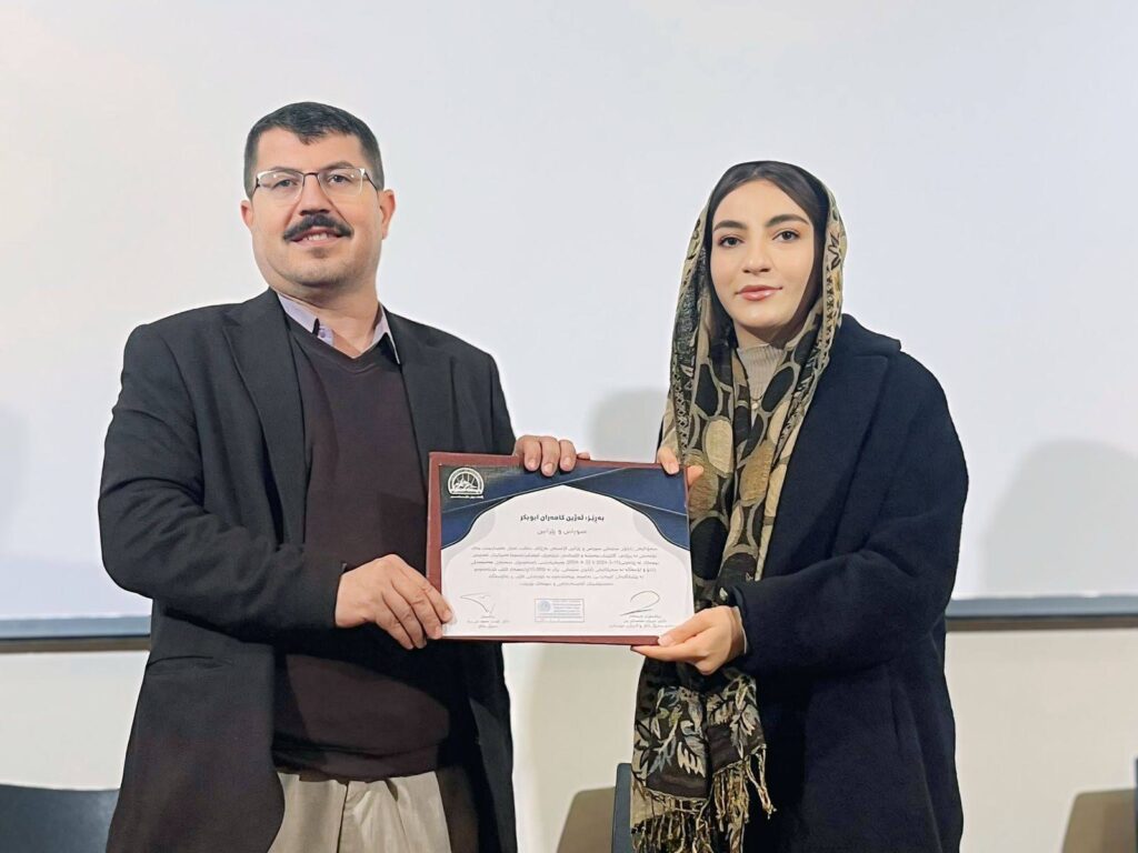 Azhin Kamaran, a member of the Aran Organization, who participated in this campaign as a student, was awarded this certificate of appreciation.